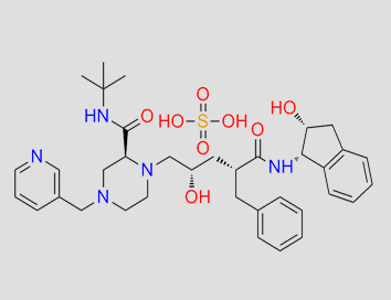 (1(1s,2r),5(s))-2,3,5-trideoxy-n-(2,3-dihydro-2-hydroxy-1h-inden-1-yl)-5-(2-(((1,1-dimethylethyl)amino)carbonyl)-4-(3-pyridinylmethyl)-1-piperazinyl)-2-(phenylmethyl)-d-erythro-pentonamide sulfate;CRI |